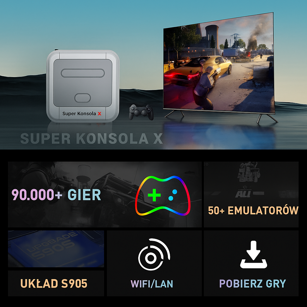 - Ogromna biblioteka gier – ponad 90 000 klasycznych tytułów już zainstalowanych. Wystarczy podłączyć i grać!
